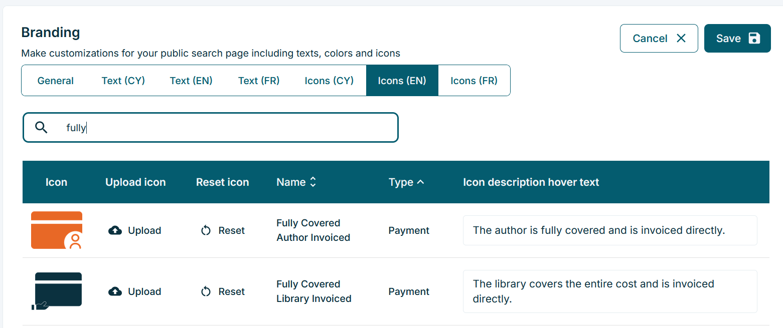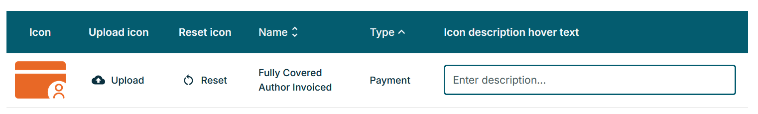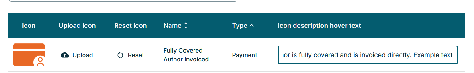 Editing Payment, Licenses, Publishing Model Icons and Texts