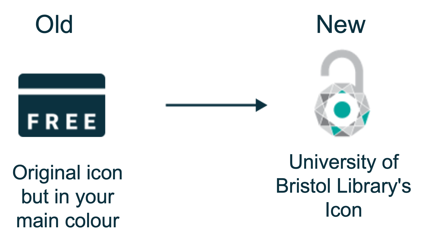 The University of Bristol Library has created a stellar icon to display as the payment option "Diamond" in your tool. If you would like the SciFree team to switch the icon for you, please let us know.